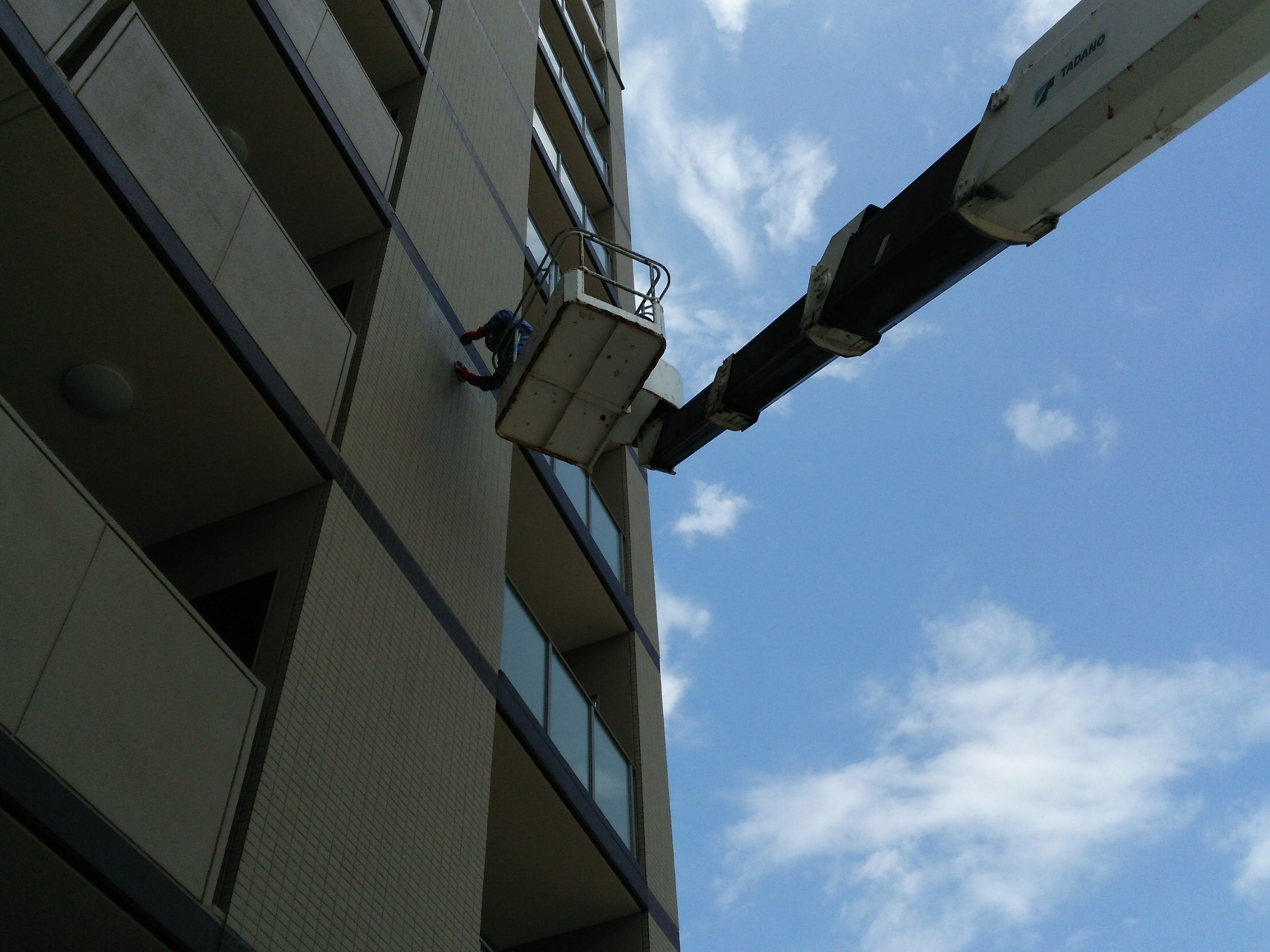 高所作業車を使用してのビルの外壁清掃も行えます。様々困難に見える箇所の困難に思える作業でも、まずはお気軽にお問い合わせください。可能な限り対応させていただきます。